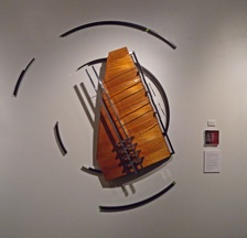 a sculpture of exotic hardwood, aluminum, steel and acrylic glass