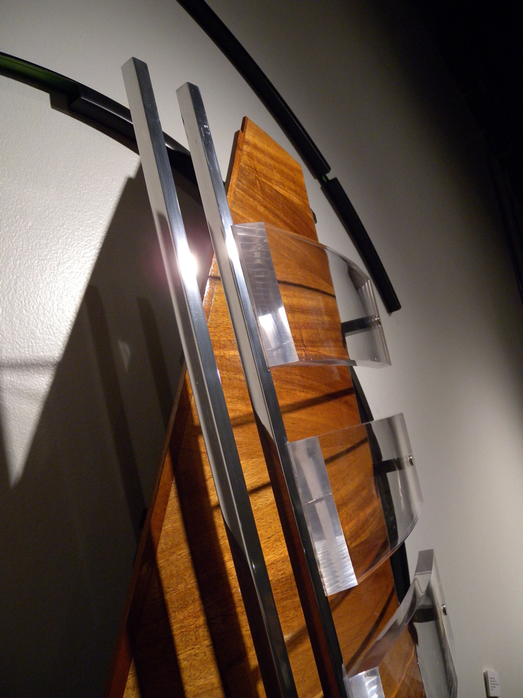 a sculpture of exotic hardwood, aluminum, steel and acrylic glass