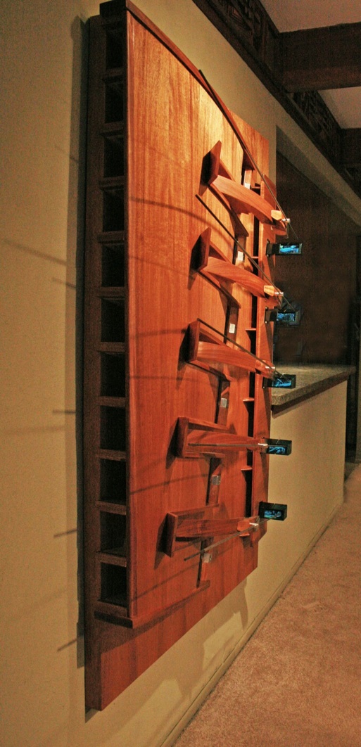 African Mahogany, Glass, Aluminum, Dichroic Automotive Paint, Steel