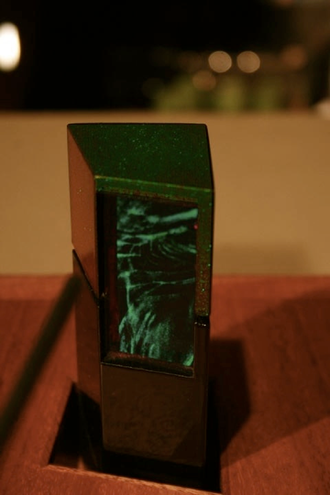 African Mahogany, Glass, Aluminum, Dichroic Automotive Paint, Steel